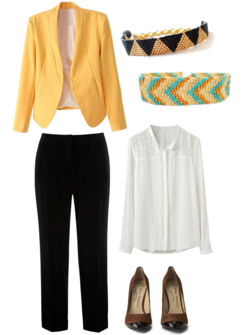 Buenos días preciosas !! Hoy te traigo este outfit para la vuelta al trabajo ! Simplemente elige una americana de un color que te aporte energía y complementos coloridos como estas dos pulseras de abalorios!