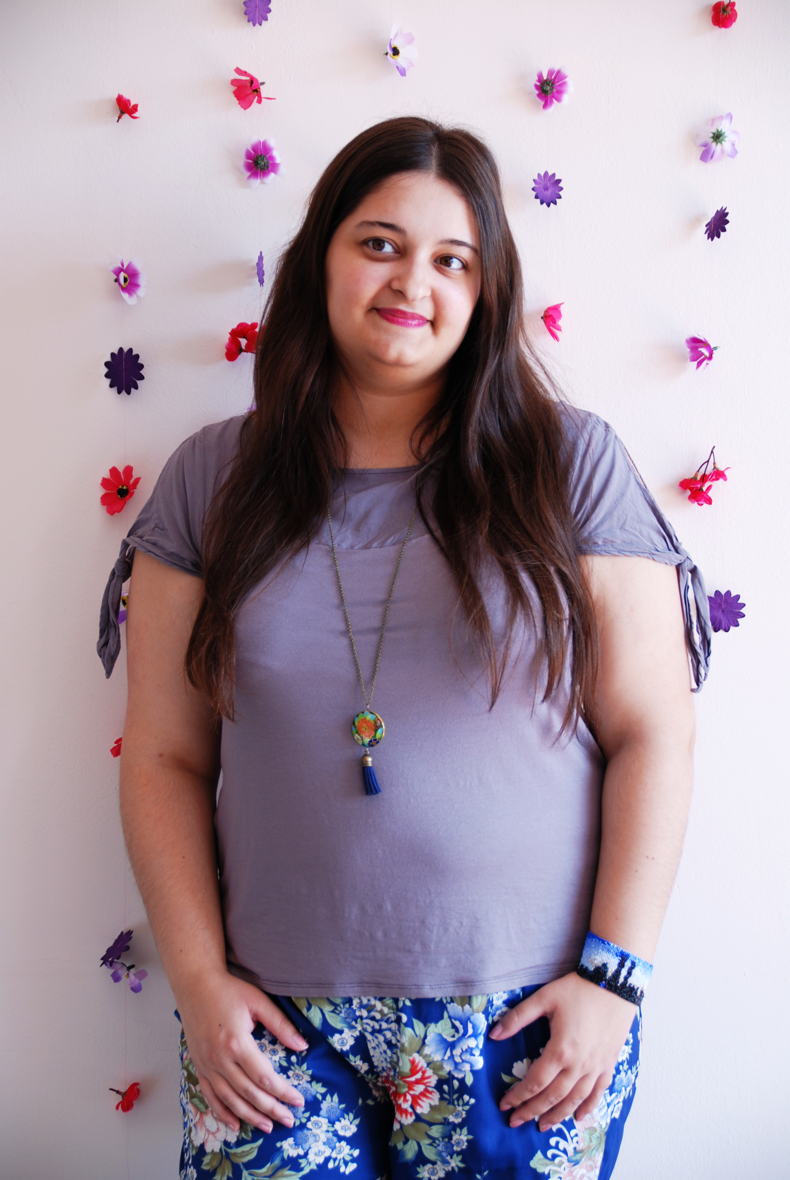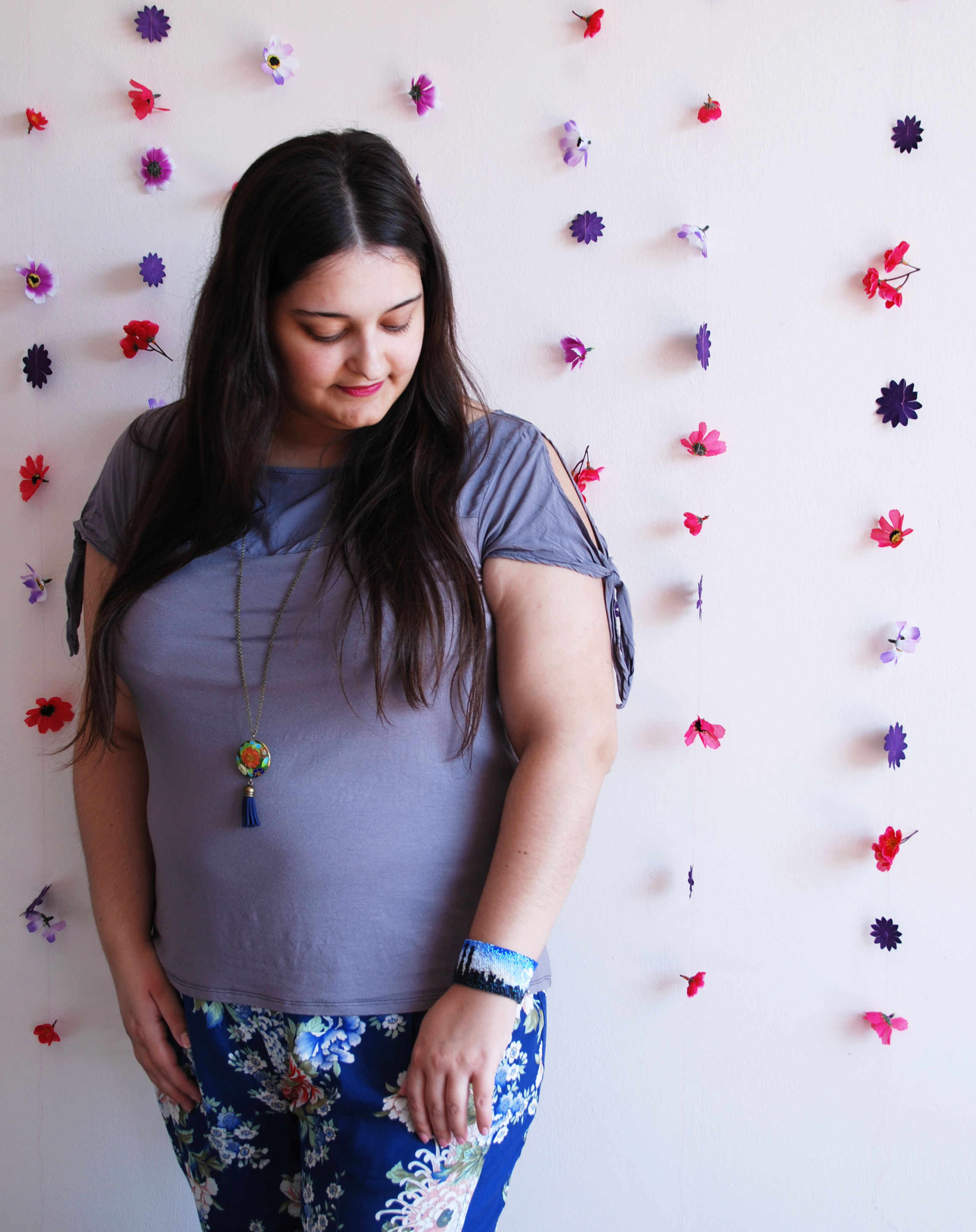 Hola Preciosas! Hoy te quiero mostrar estas fotos que hicimos con mi hermana para preparar la nueva sesión de fotos a modelos para mis nuevas colecciones de bisutería! Simplemente puse unas tiras de flores de plástico unidas con hilo de coser y colgadas a la pared ! Que os parece ???