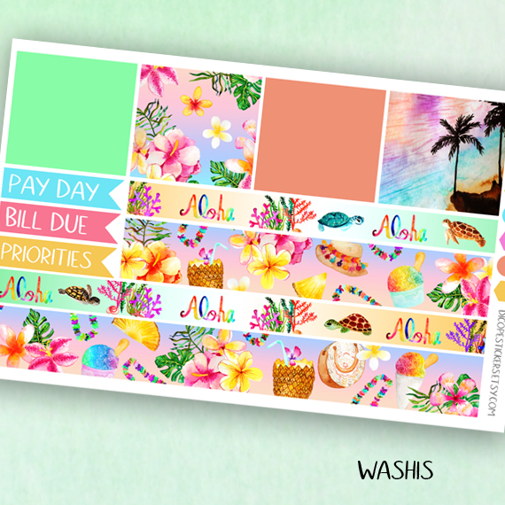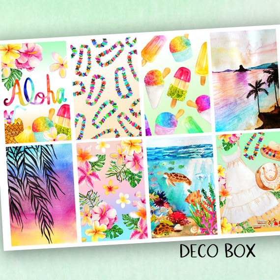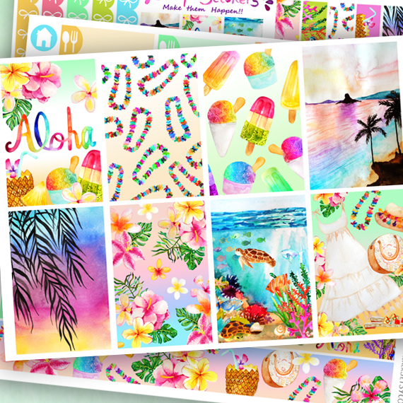 The Aloha collection is here! Created in yellow, pink and mint colors. All with a gorgeous watercolor beach scene , an inside the ocean scene, hawaiian flowers and yummy pineapple , shaved ice and popsicles ! All painted by me ;)