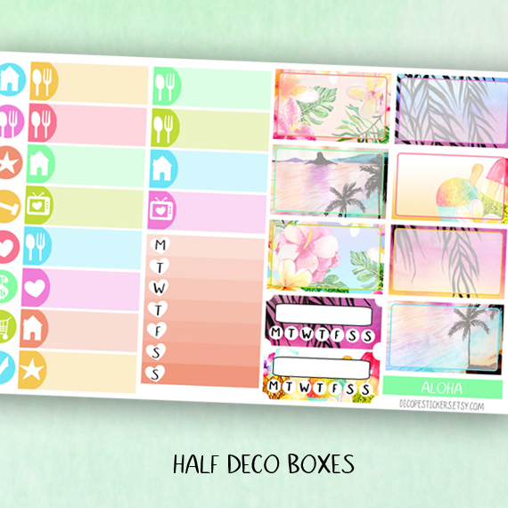 Here You have the 5 sheets kit that has 172 beautiful watercolored stickers that include 8 deco boxes (for classic size happy planner that allows space for headers or erin condren/recollections vertical planners ) 33 headers , 7 half boxes, 3 weekly goals boxes , 12 mini icon boxes and 109 lovely functional + decor and washi stickers!