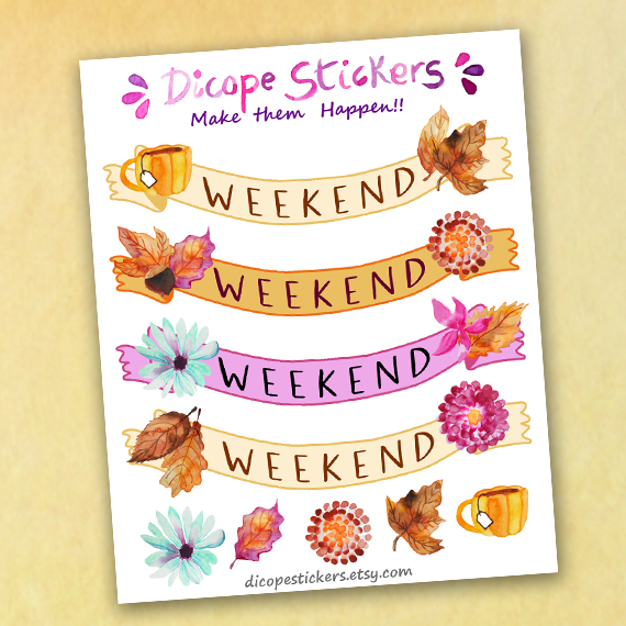Watercolor Weekend Banner Planner Stickers for You in fall colors ! These beautiful banners are perfect to help you plan your weekend fun!! They are part of my New Autumn Days Collection ♥