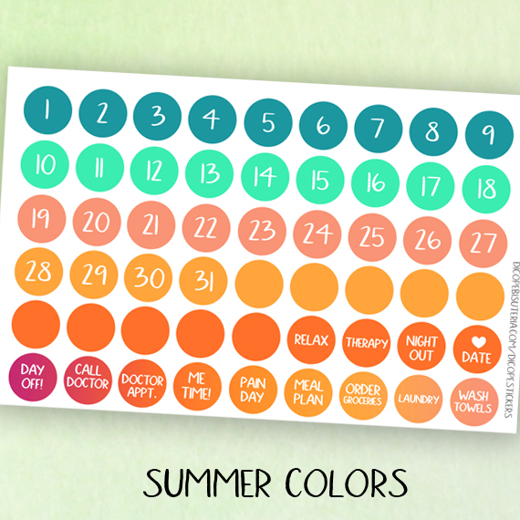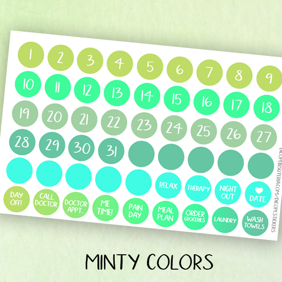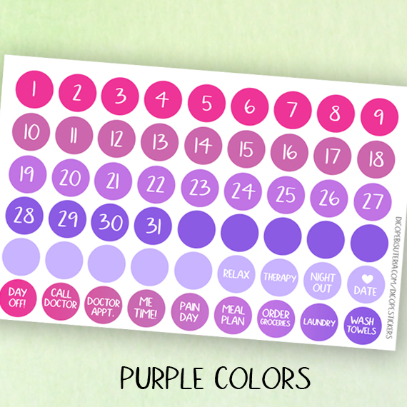New 54 icon date stickers in some of my favourite shop colors!! Choose from spring colors , summer colors, purple colors or minty colors or You can get them all ;)