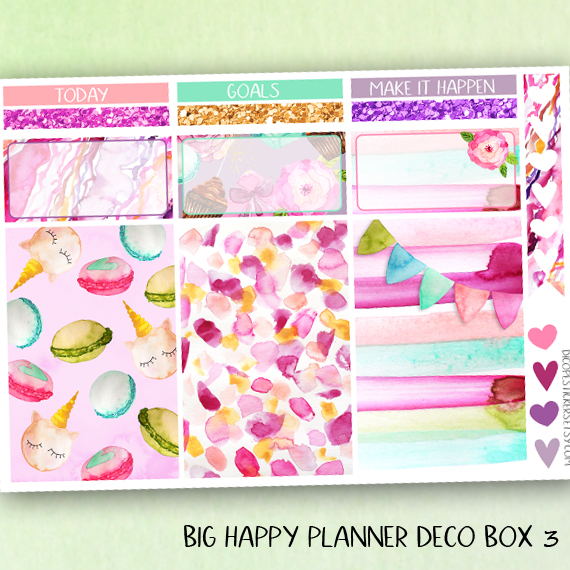 Here You have the 4 sheets kit that has 73 beautiful watercolored stickers that include 8 deco boxes (for BIG happy planner) , 1 checklist deco box, 40 headers (some of them with faux glitter effects), 9 half boxes , 3 checklists and 12 hearts! All painted by me ;P