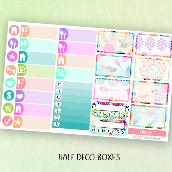 Here You have the 5 sheets kit that has 169 beautiful watercolored stickers that include 8 deco boxes(for classic size happy planner that allows space for headers or erin condren/recollections vertical planners ) 33 headers , 7 half boxes, 3 weekly goals boxes , 12 mini icon boxes and 106 lovely functional + decor and washi stickers!