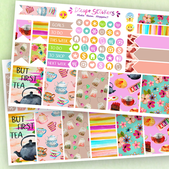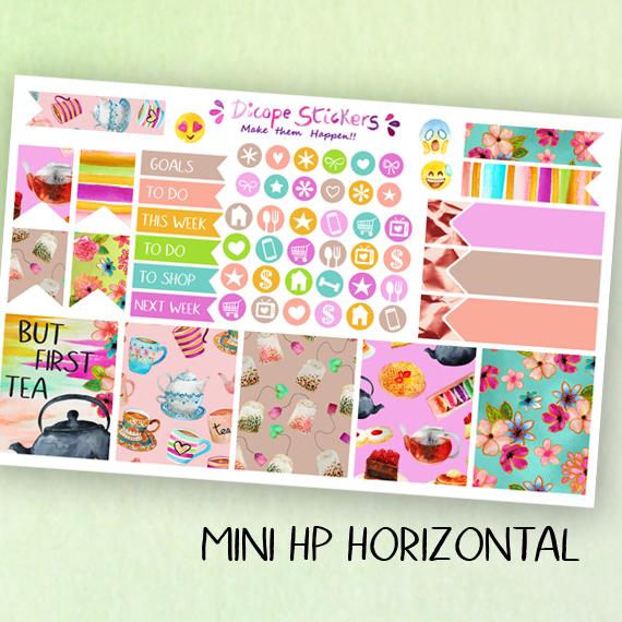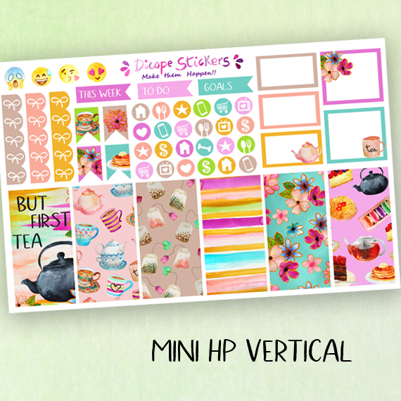 New But First Tea stickers kit for your mini Happy Planner! You can choose vertical or horizontal! All painted by me ;)