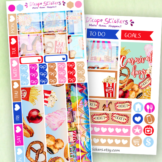 New carnival days stickers kit for your hobonichi weeks Planner! All painted by me ;)