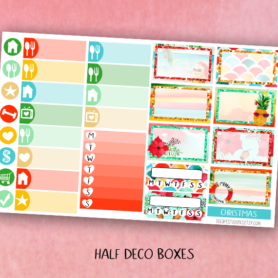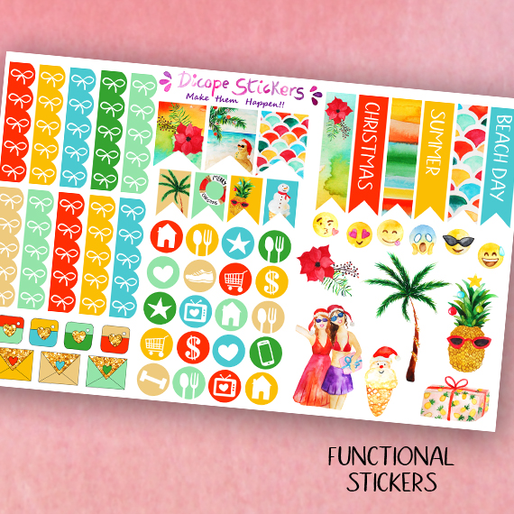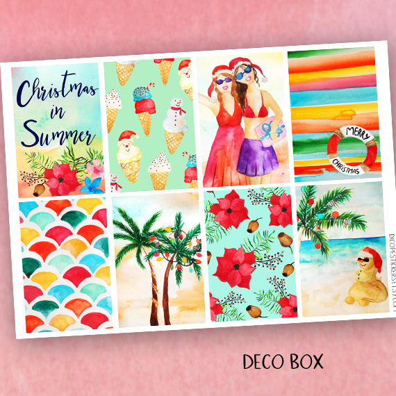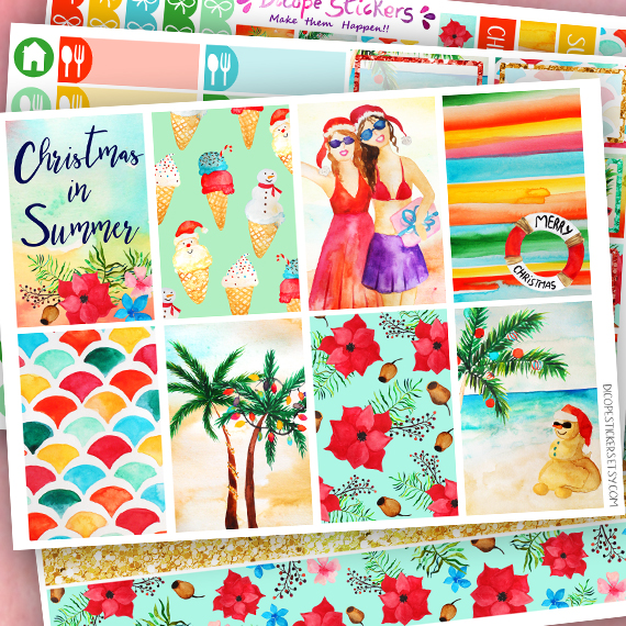 The Christmas in Summer collection is here! Created in red and blue colors with other traditional christmas shades for all the planner girls that have a warm weather christmas! All with gorgeous watercolors like santa ice cream, christmas girls in the beach and palm trees! All painted by me ;)