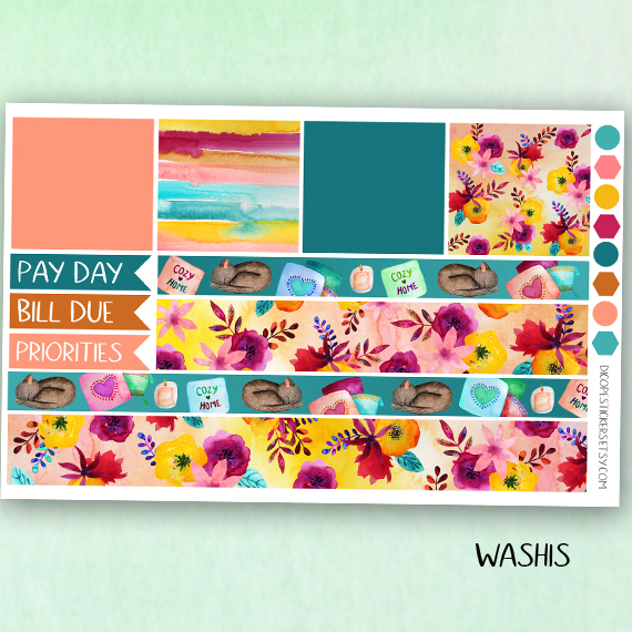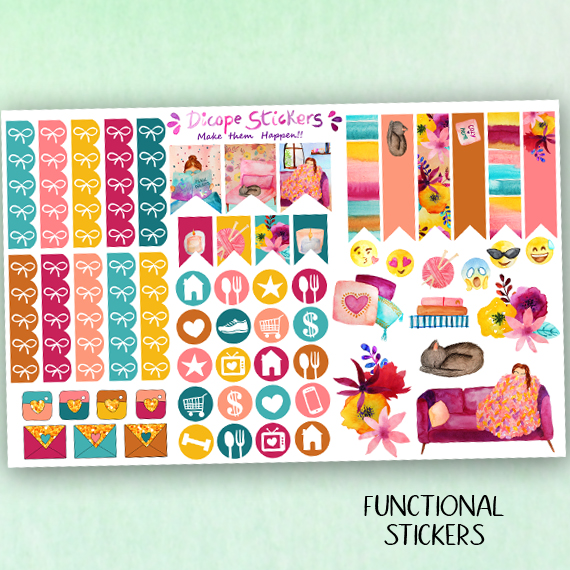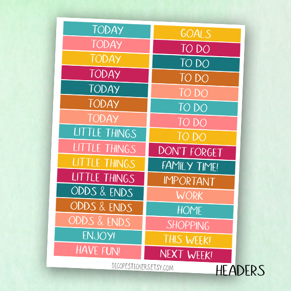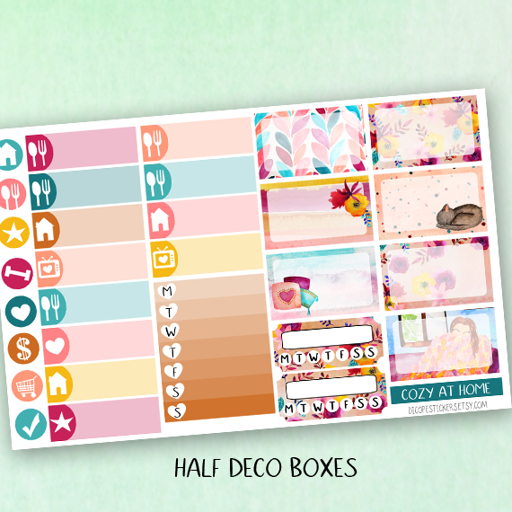 Here You have the 5 sheets kit that has 168 beautiful watercolored stickers that include 8 deco boxes (for classic size happy planner that allows space for headers or erin condren/recollections vertical planners ) 33 headers , 7 half boxes, 3 weekly goals boxes , 12 mini icon boxes and 105 lovely functional + decor and washi stickers!
