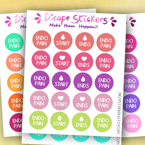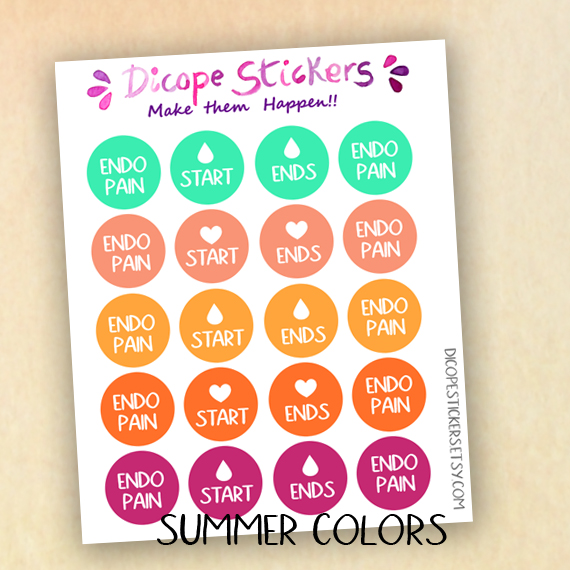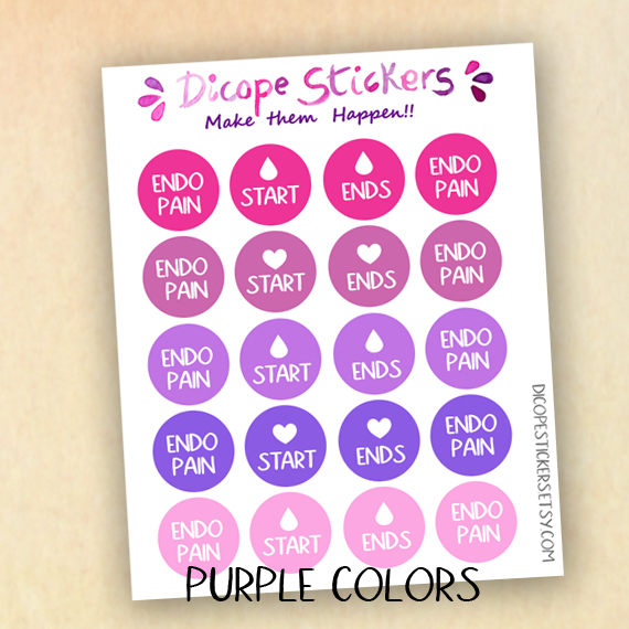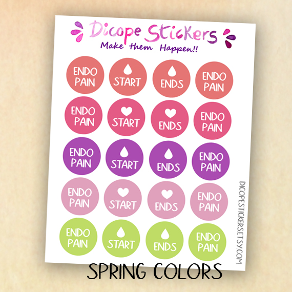 New 20 icon endo pain stickers in some of my favourite shop colors!! Choose from spring colors , summer colors, purple colors or minty colors or You can get them all ;)