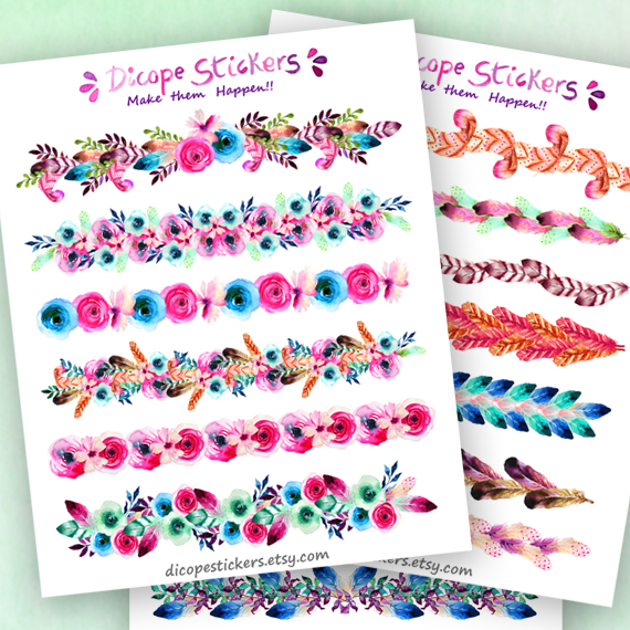 New border stickers with the flowers , feathers and leaves from the boho dreams collection!! Choose from three different styles! They are perfect to decor planners , journals , notebooks and more