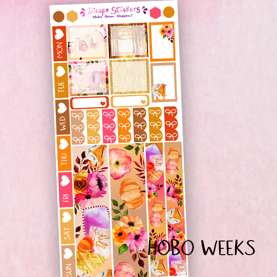 New Foxy Fall stickers kit for your hobonichi weeks Planner! Created in orange pink and brown colors with cute watercolor fall flowers! All painted by me ;)