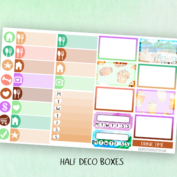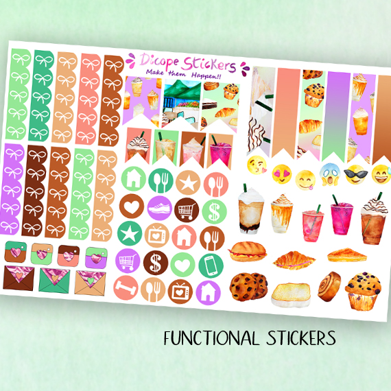 Here You have the 5 sheets kit that has 174 beautiful watercolored stickers that include 8 deco boxes (for classic size happy planner that allows space for headers or erin condren/recollections vertical planners ) 33 headers , 7 half boxes, 3 weekly goals boxes , 12 mini icon boxes and 111 lovely functional + decor and washi stickers!