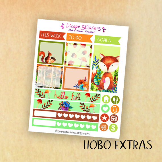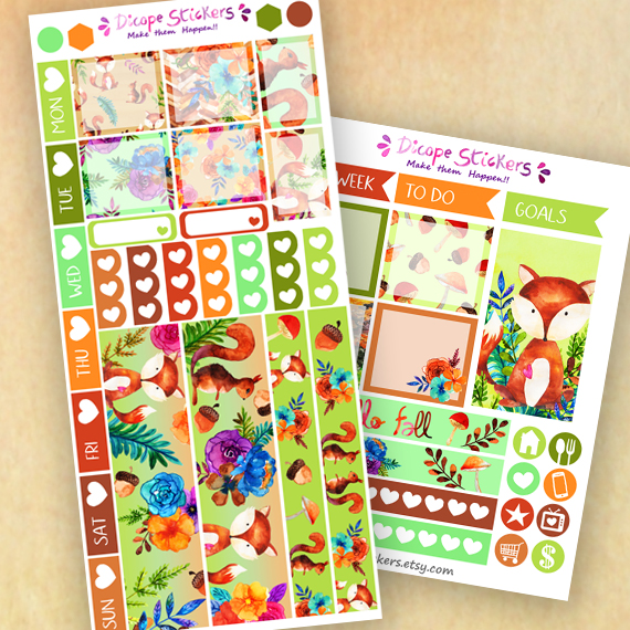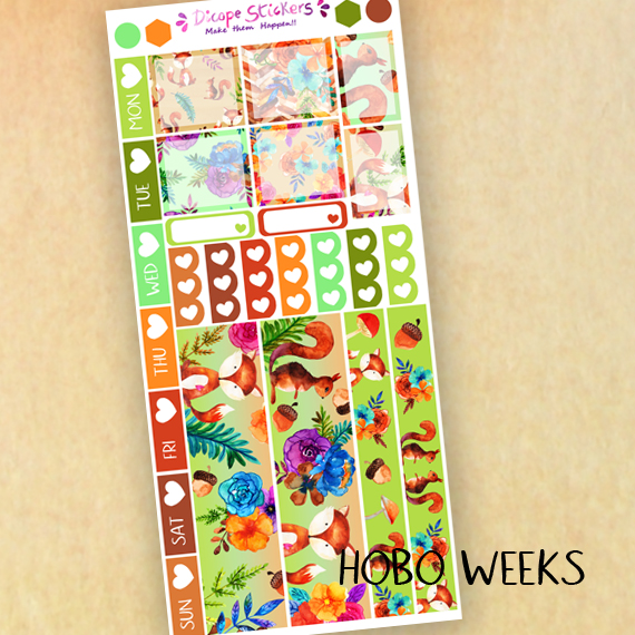 New Hello Fall stickers kit for your hobonichi weeks Planner! Created in green orange and brown colors with cute watercolor fox and squirrel and lovely florals! All painted by me ;)