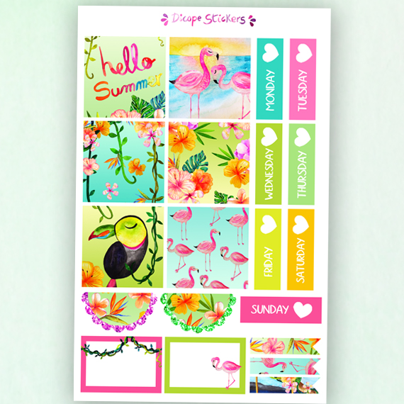 TAGS: watercolor, flowers, tropical , vacation, bird, parrot, flamingo , tucan bird, ivy, beach