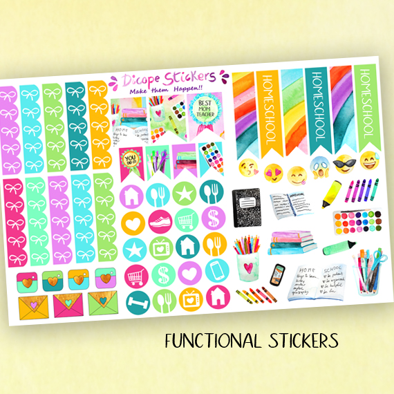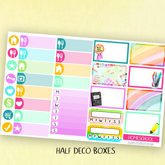 Here You have the 5 sheets kit that has 174 beautiful watercolored stickers that include 8 deco boxes (for classic size happy planner that allows space for headers or erin condren/recollections vertical planners ) 33 headers , 7 half boxes, 3 weekly goals boxes , 12 mini icon boxes and 111 lovely functional + decor and washi stickers!