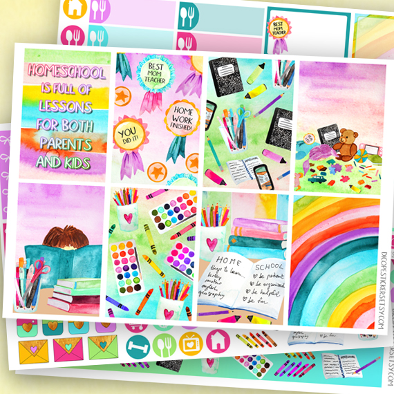 The Homeschooling collection is here! Created in lilac, blue and yellow bright colors. All with gorgeous watercolors stationary and homeschool things! All painted by me ;)