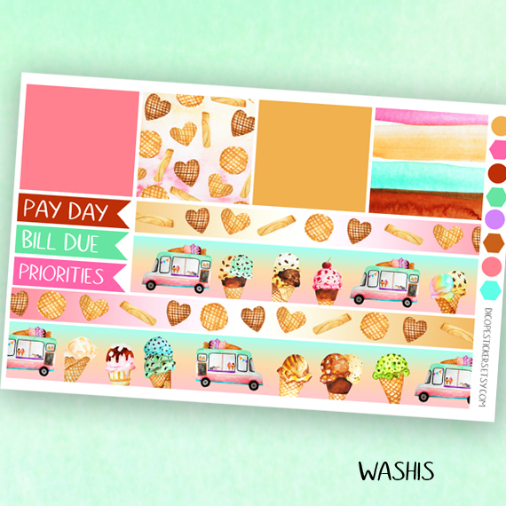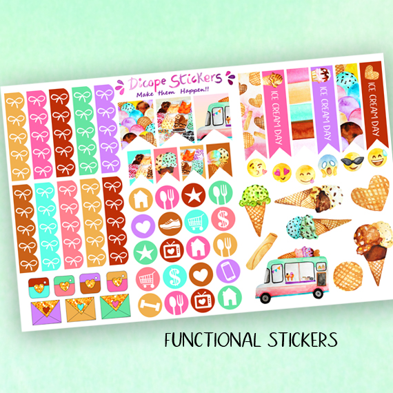 Ice Cream Paradise Planner Stickers kit of 5