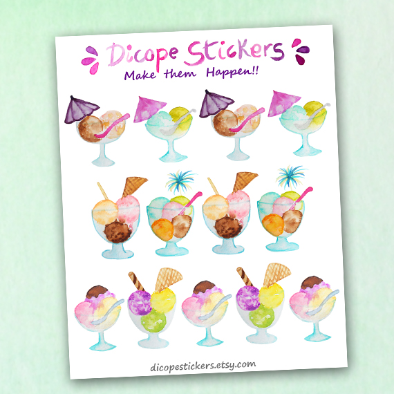 Summer is here and so is the need for eating lots of ice cream!! Plan your ice cream days with this lovely multi scoop ice cream desserts stickers painted by me!