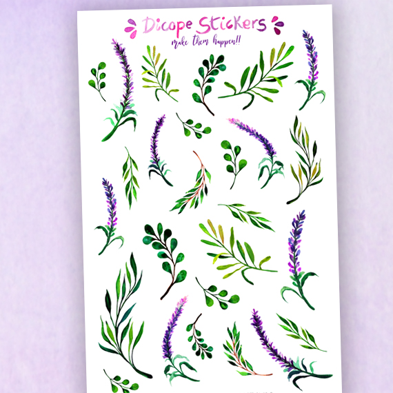 Gorgeous watercolor lavander and leaves decor stickers for your planner