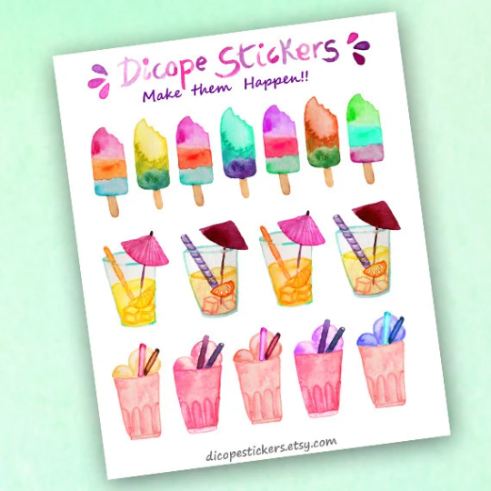 Enjoy & Plan your fun summer days with these lovely Drinks and Popsicle stickers painted by me!