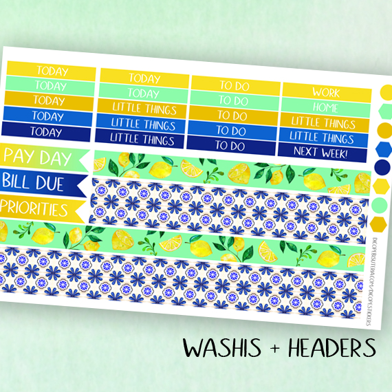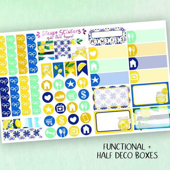 Here You have the 3 sheets kit that has 92 beautiful watercolored stickers that include 8 deco boxes (for classic size happy planner that allows space for headers or erin condren/recollections vertical planners ) 20 headers , 4 half boxes, 1 weekly goals boxes and 59 lovely functional + decor stickers!