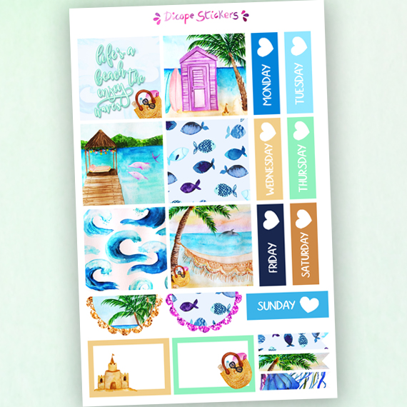 Life is a Beach Hobonichi Cousin planner sized stickers, perfect for your cousin planners with deco boxes sized 1,3 x 1,3 inch