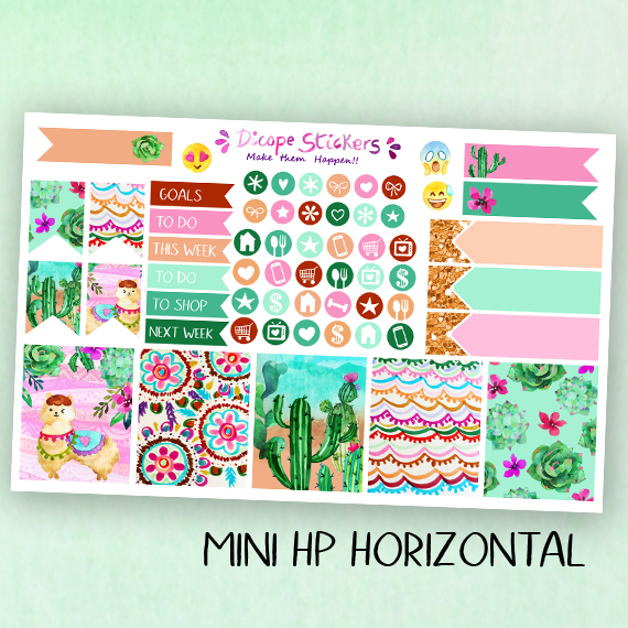 New llama stickers kit for your mini Happy Planner! You can choose vertical or horizontal! Created in green and sand colors with gorgeous multicolor pen drawings and watercolor cactus , llama , alpaca and flowers! All painted by me ;)