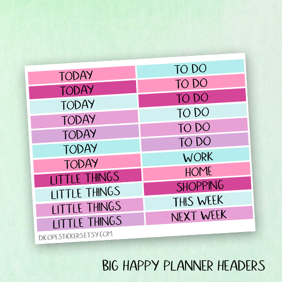Here You have the 4 sheets kit that has 73 beautiful watercolored stickers that include 9 deco boxes (for BIG happy planner) 40 headers, 9 half boxes , 3 checklists and 12 hearts! All painted by me ;P