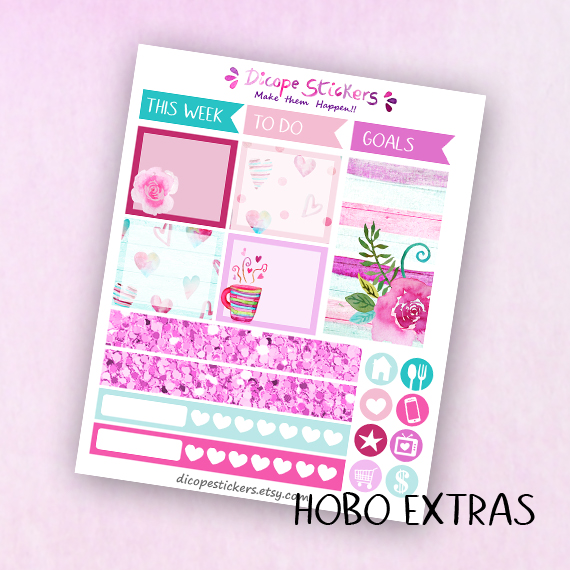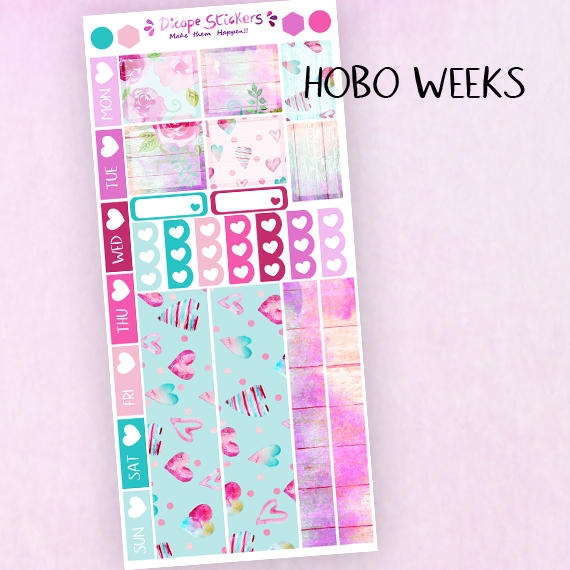 New Love Yourself stickers kit for your hobonichi weeks Planner! Created in pink and baby blue colors with with gorgeous watercolor flowers and hearts ! All painted by me ;)