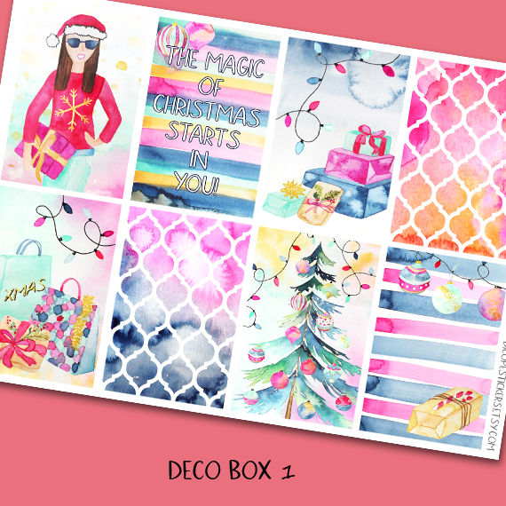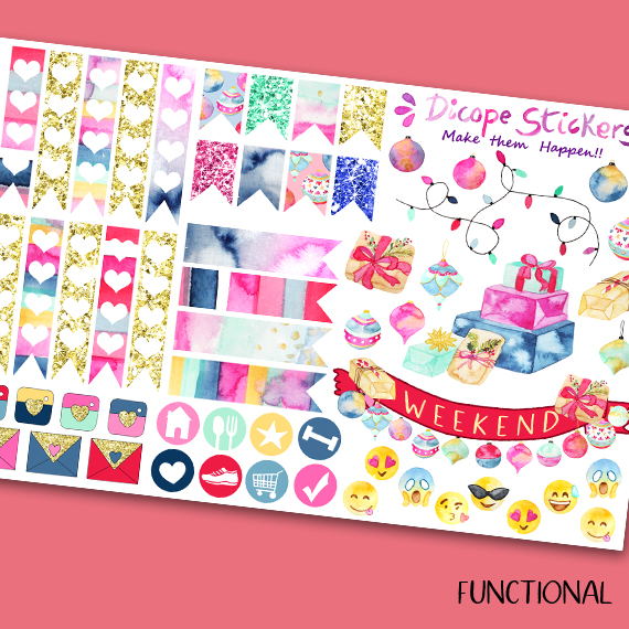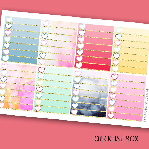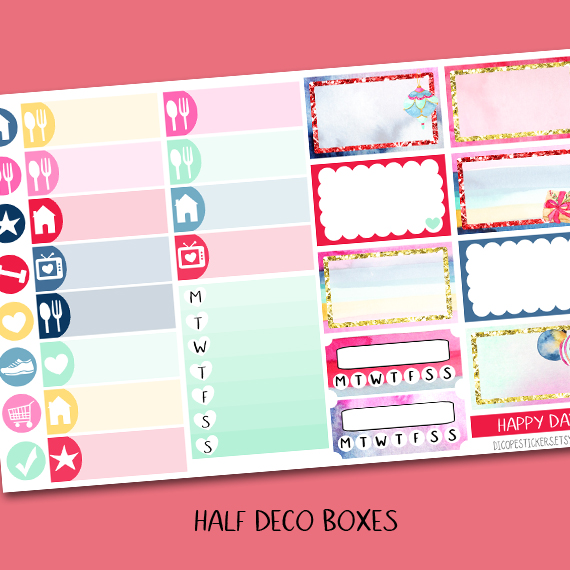 Here You have the 6 sheets kit that has 146 beautiful watercolored stickers that include 16 deco boxes (for happy planner or EC vertical planners ) 8 checklist boxes , 33 headers , 7 half boxes, 3 weekly goals boxes , 12 mini icon boxes and 67 lovely functional + decor stickers!