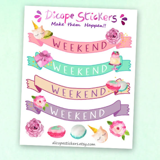 Watercolor Weekend Banner Planner Stickers for You in pastel colors ! These beautiful banners are perfect to help you plan your weekend fun!! They are part of my New Birthday Collection ♥