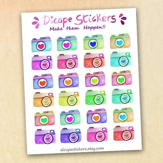 Photo Camera watercolor stickers in lovely colors! Perfect for planning you photo sesions and fun days!