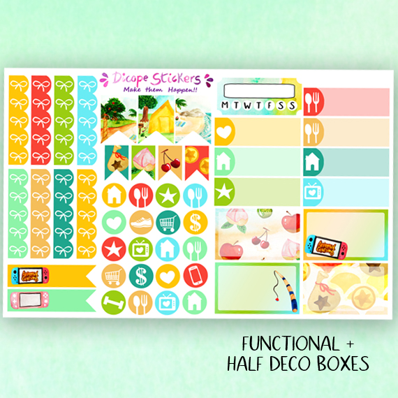 Here You have the 3 sheets kit that has 92 beautiful watercolored stickers that include 8 deco boxes (for classic size happy planner that allows space for headers or erin condren/recollections vertical planners ) 20 headers , 4 half boxes, 1 weekly goals boxes and 59 lovely functional + decor stickers!