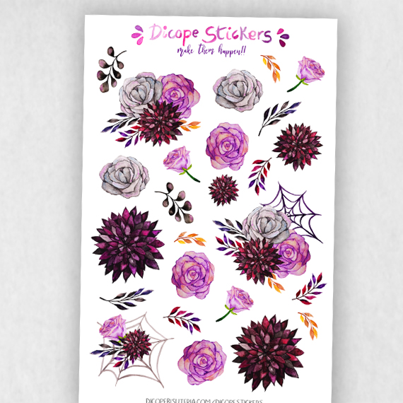 Gorgeous watercolor Purple Florals stickers for your planner from my wednesday collection