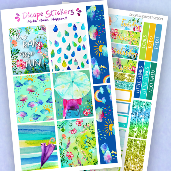 New rainy days stickers kit for your ppweeks Planner! Created in blue and green shades colors with gorgeous watercolor flowers and rainy clouds ! All painted by me ;)