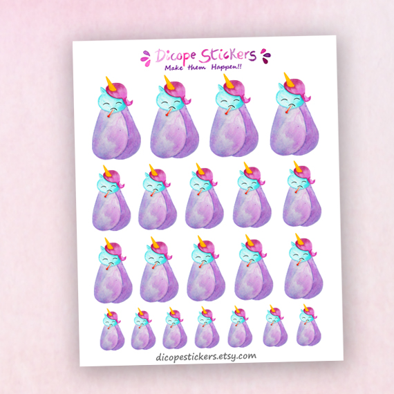 New Watercolor Sick Unicorn Planner Stickers for You! You get 21 unicorns in different sizes to note when you are ill and may have a fever ;)