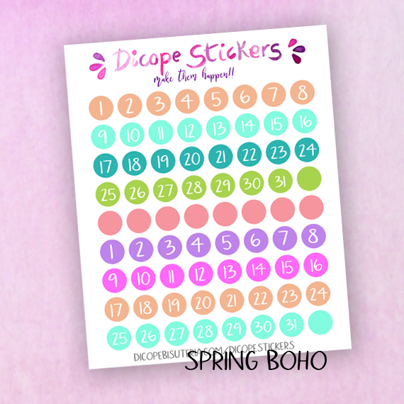 New 72 icon date stickers in some of my favourite shop kits colors!! Choose from spring florals , spring love , spring purple , spring boho ans spring easter or You can get them all ;)