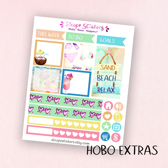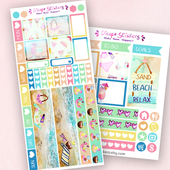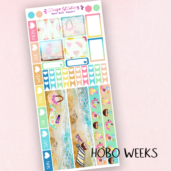 New Summer Beach stickers kit for your hobonichi weeks Planner! Created in blue and ice cream colors with lovely watercolor beach things, drinks and sunglasses ! All painted by me ;)