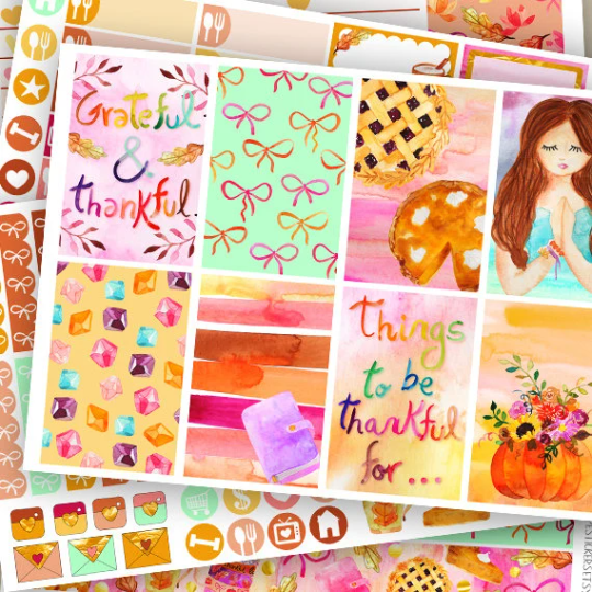 The thankful collection is here! Created in mint , yellow orange and pink colors with gorgeous watercolor pies , bows , words and girl! All painted by me ;)
