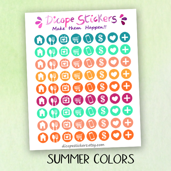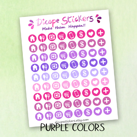 New lovely 72 tiny icons stickers for your hobo weeks and other small planners in some of my favourite shop colors!! Choose from spring colors , summer colors, purple colors or minty colors or You can get them all ;)