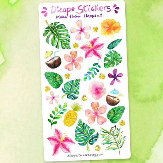 Lovely 30 deco stickers from my tropical summer collection! All watercolor painted by me!