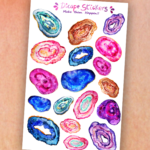 Watercolor Druzy Agate Gemstones Decorative Stickers