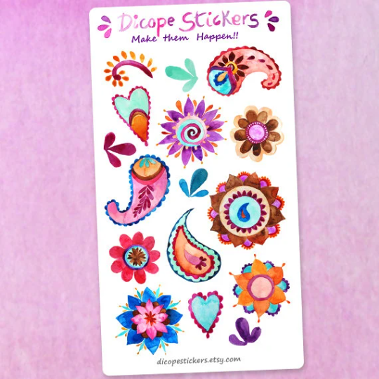 Watercolor Paisley and Mandala stickers