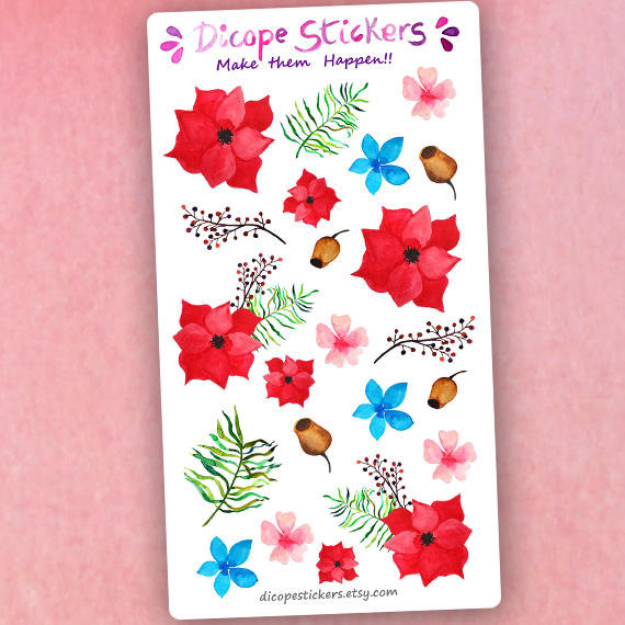 Lovely watercolor Poinsettia flowers part of my new christmas in summer collection!! All painted by me ;P