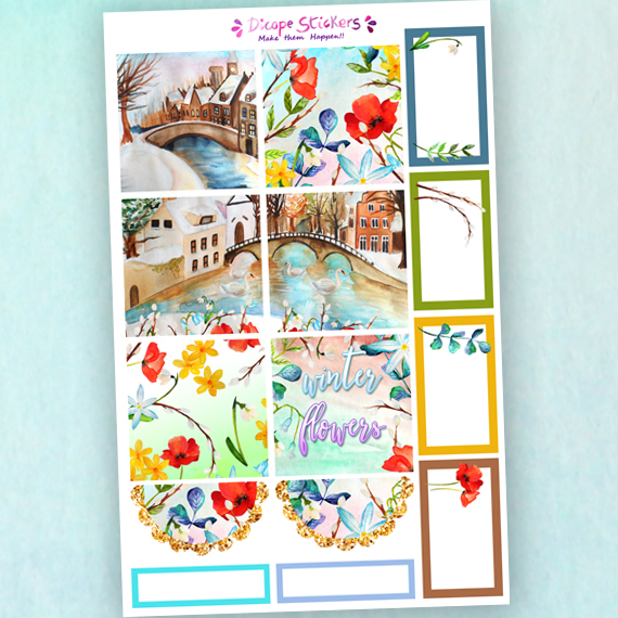 Winter Flowers Academic planner sized stickers , perfect for your Academic planners with deco boxes sized 1,5 x 1,5 inch