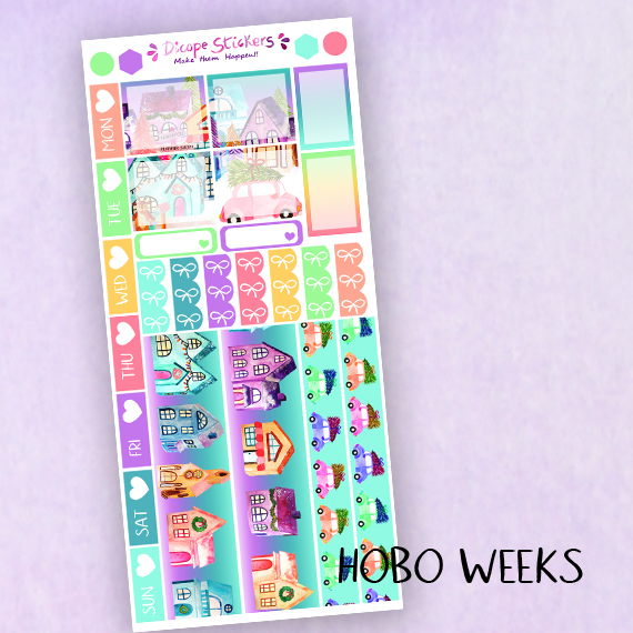 New Pastel Dreams Village stickers kit for your hobonichi weeks Planner! Created in pastel bright colors with with gorgeous watercolor houses ! All painted by me ;)