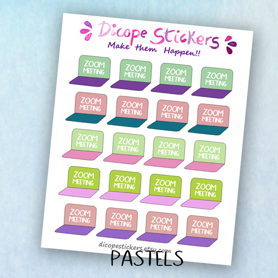 Lovely 20 new zoom meeting planner stickers in pastels and colorful colors. Perfect to note in your planner when to work from home