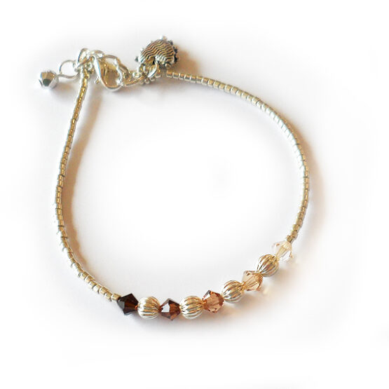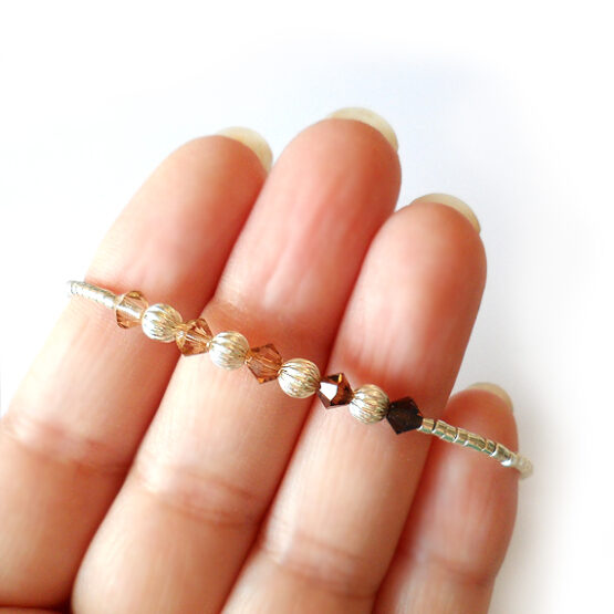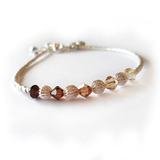 Elegant and delicate Autumn bracelet handmade with sparkly swarovski crystals in brown colors , silver metal beads and my favourite seed glass beads in silver color.