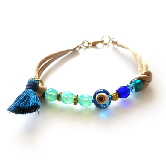 Lovely bella mare beach inspired bracelet created with a several glass beads and a cute tassel.