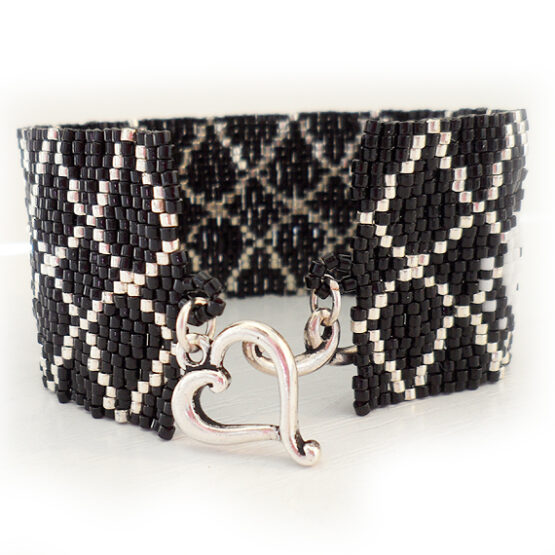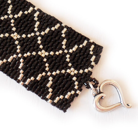 Elegant and Sexy mixed rhombus bracelet handmade with best quality glass beads in black and silver colors ! An exquisite jewel of more than a 2000 beads ( with 8 hours of work ) and an easy to use silver plated clasp.